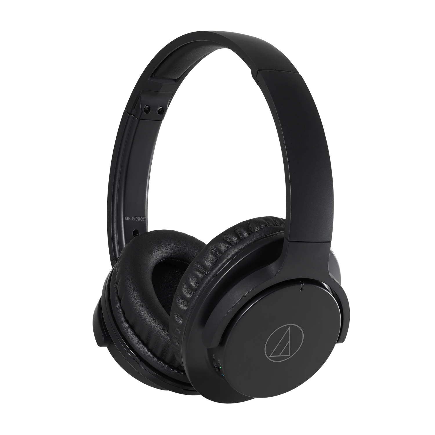 The ATH-ANC500BT QuietPoint® wireless over-ear headphones use proprietary active noise-cancelling technology to provide a comfortable listening environment in areas with high ambient noise. The headphones’ 40 mm drivers supply powerful sound reproduction with exceptional clarity, whether operating over a Bluetooth wireless connection or a standard wired connection using the included 1.2 m (3.9′) audio cable with 3.5 mm (1/8″) stereo mini-plug. Memory-foam earpads provide excellent sound isolation and amazing comfort, and the earcups fold in to make the headphones more compact and easy to transport.