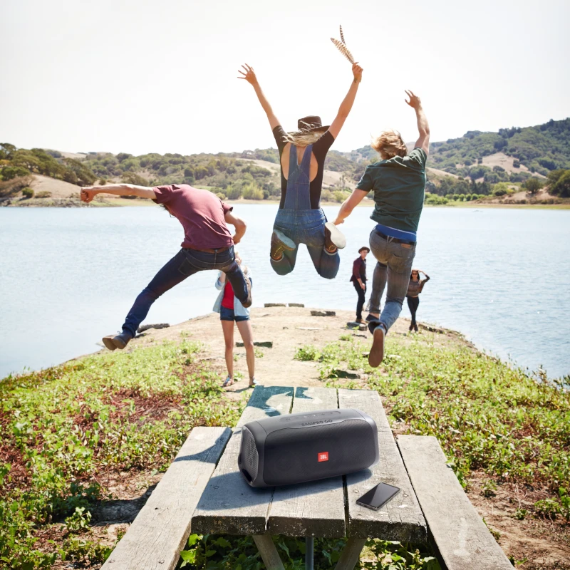 - JBL Connect –Â Connect up to 3 devices for social mode music sharing and wirelessly connect two BassPro Go speakers together for simultaneous audio playback.