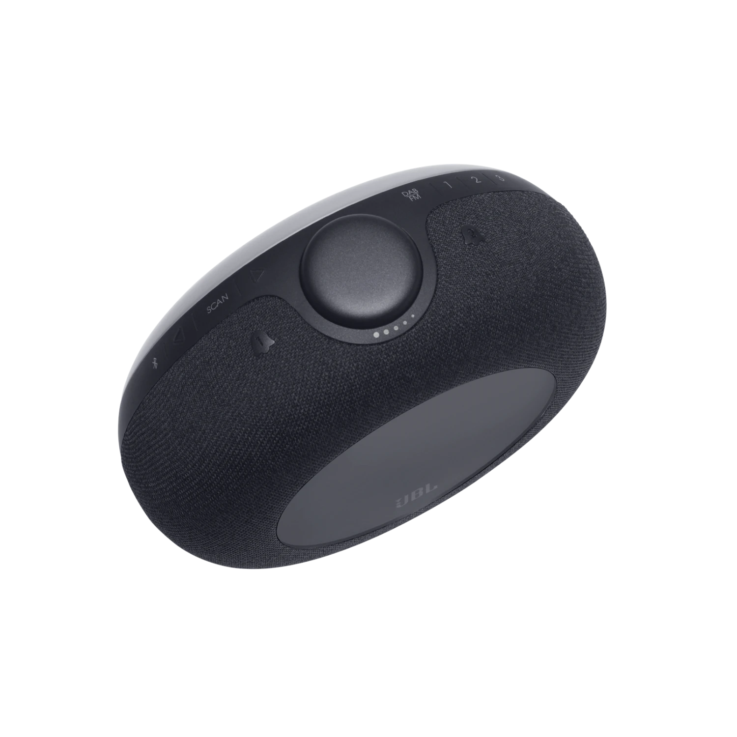 Wake up to JBL Pro Sound. With its signature round design, ambient LED light and FM radio, JBL Horizon 2 completes any bedroom. A large LCD display clearly shows the time, alarm settings and radio info, while the lifestyle fabric cover blends perfectly with any decor. Choose from a selection of alarm tones or one of your favorite FM radio stations. The easy-to-use rotary control knob lets you set and snooze alarms, adjust the volume or turn the ambient light on and off. Complete with two convenient USB ports for charging your devices, JBL Horizon 2 is the perfect bedside companion.