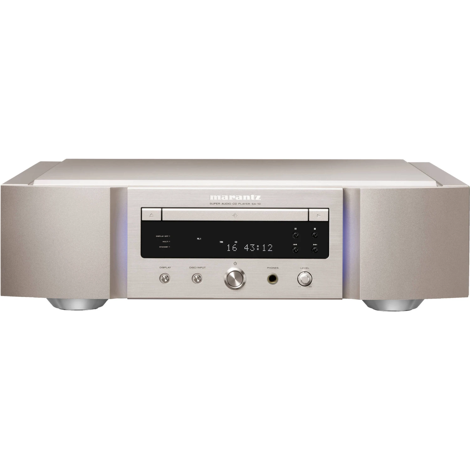 Enjoy all your favorite audio CDs, SACDs, and files with the black Marantz SA10 SACD Player. It has a front-loading tray that will accept your SACDs, CDs, CD-Rs, CD-RWs, and DVD-ROM discs encoded with various audio file types, including MP3, WMA, WAV, and AAC. The CD player has a USB Type-A port for playing files from portable drives, as well as a USB Type-B input for connecting your computer. For private listening, it has a 1/4″ headphone output on the front panel. It includes a stereo RCA cable, a remote cable, and a remote control.