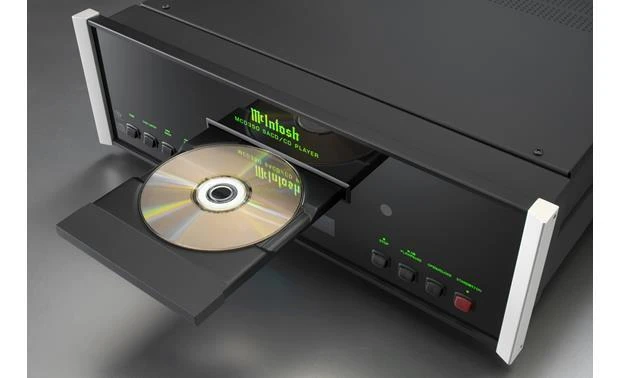 It features 2x read speed so that all discs placed in its rigid aluminum die-cast tray are read at higher speeds allowing their data to be stored in a buffer memory for a better error correction and tracking. A twin laser optical pickup uses a single objective lens with two laser units each employing different wavelengths that are optimized for SACD and CD playback. The classic McIntosh black glass front panel with an illuminated logo and aluminum end caps complete the unit.