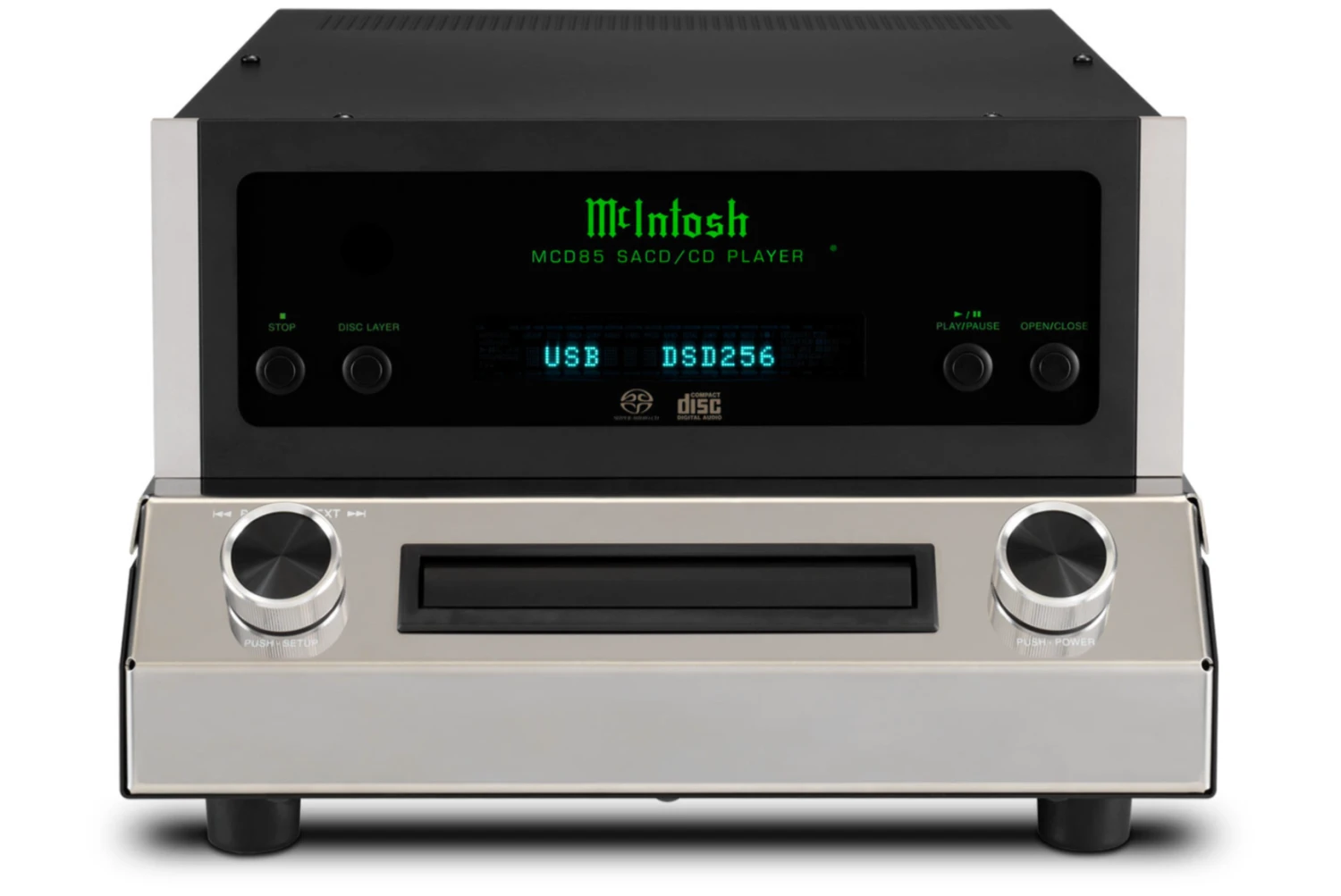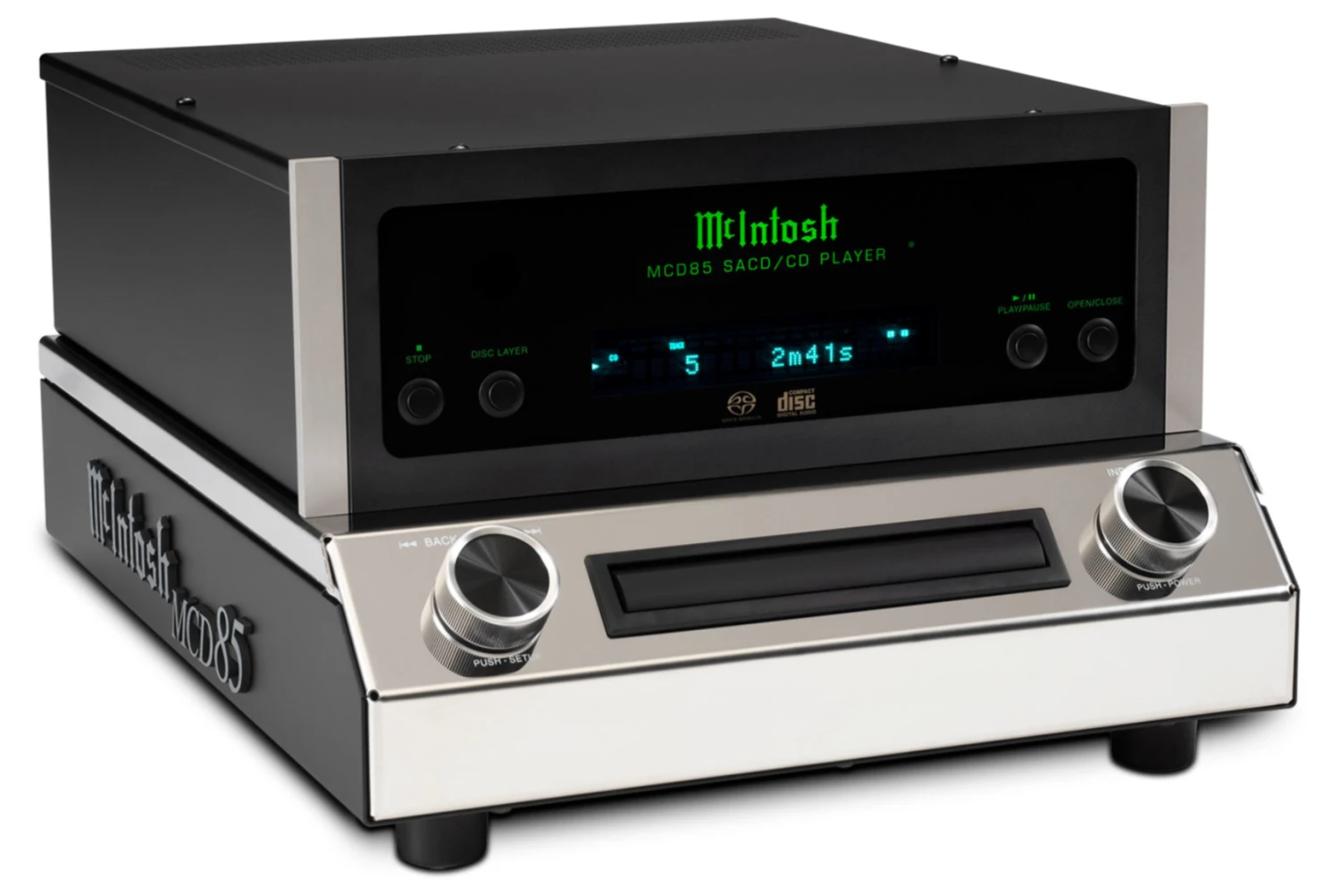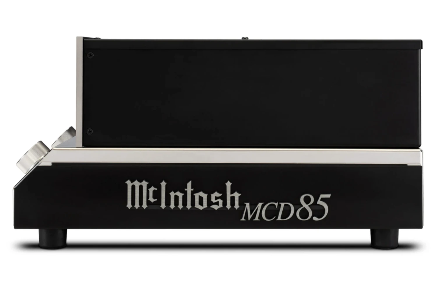 The MCD85 employs 2x read speed, meaning all discs placed in its sturdy die-cast tray are read at higher speeds, allowing their data to be stored in a buffer memory for better error correction and tracking. The tray features a new, custom front beveled nose to match the angle of the chassis and provides smooth and quiet disc handling. Disc reading is performed in the high-quality disc mechanism by a twin laser optical pickup that uses a single objective lens with two laser units, with each employing different wavelengths that are optimized for SACD and CD playback. Power Control and data ports allow for seamless integration with other McIntosh home audio system components.