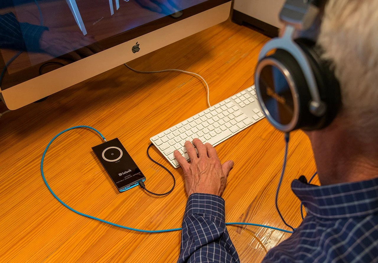 The handheld MHA50 Portable Decoding Amplifier can make your music sound its best—and likely better than you’ve ever heard it before—through your headphones.