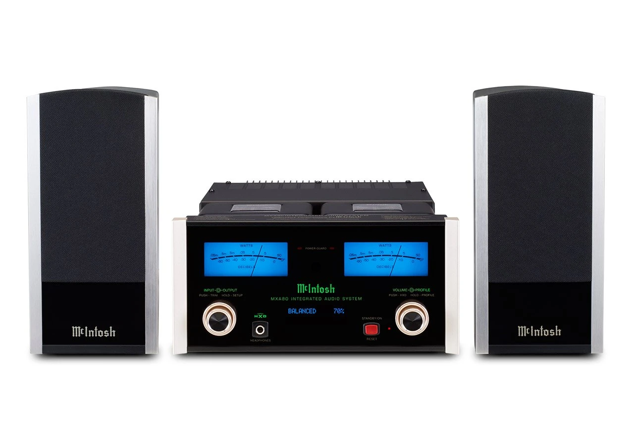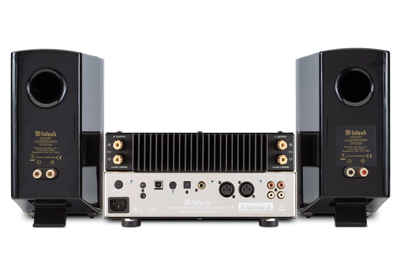 MXA80 features a 50 watt stereo amplifier and a pair of specially designed 2-way desktop speakers that achieve a remarkably rich and full bodied level of performance for their size. A total of six inputs—4 digital and 2 analog—allow you to connect your music sources. The USB input accepts PCM signals up to 32-bit/384kHz and supports DSD64, DSD128, and DSD256 along with DXD 352.8kHz and DXD 384kHz. McIntosh’s exclusive MCT input offers a secure DSD connection to enjoy the high definition audio on SACDs when paired with the MCT450 SACD/CD Transport.