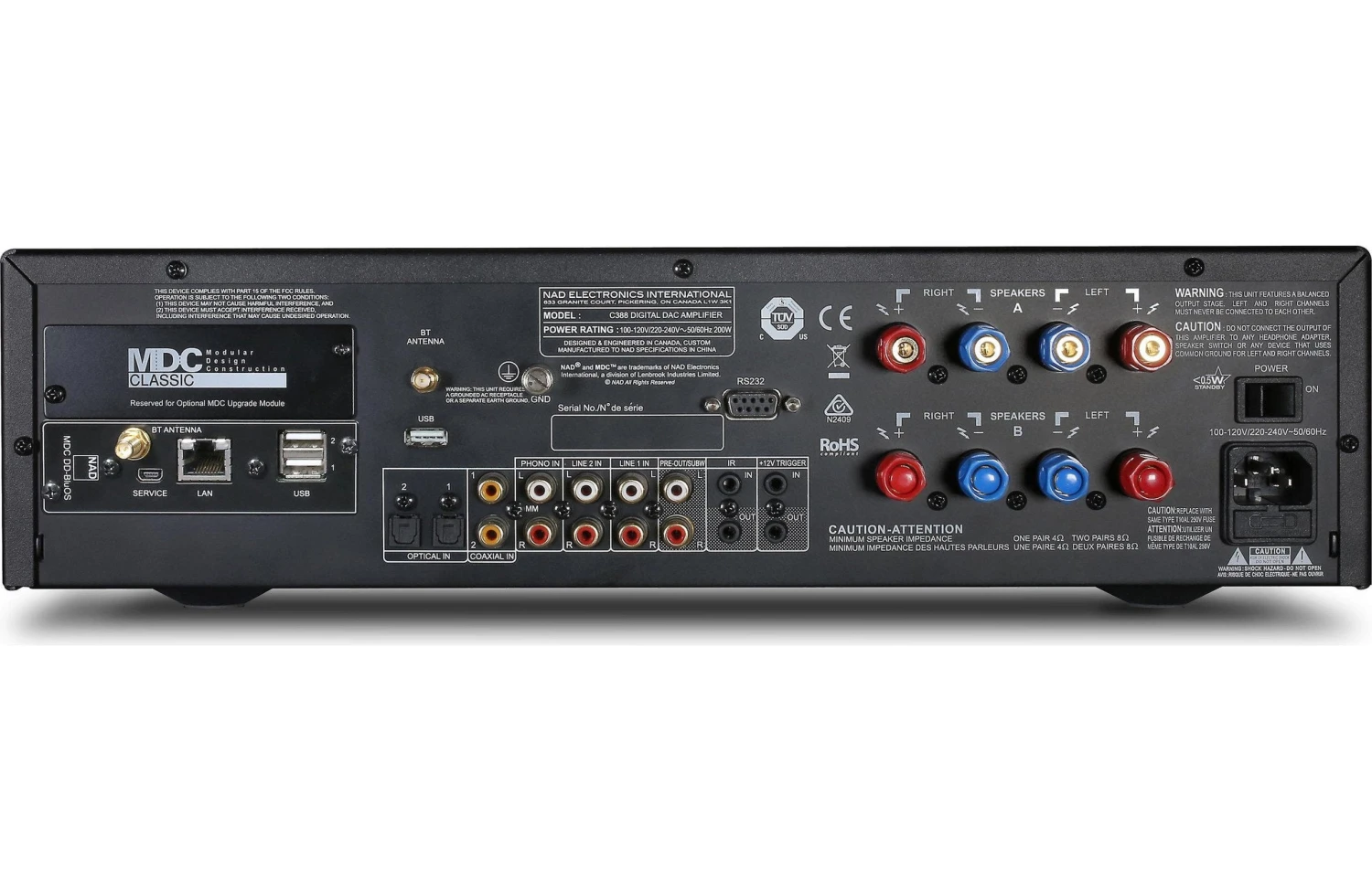 NAD’s C 388 Hybrid Digital DAC Amplifier fills your room with detailed, virtually distortion-free sound and brings out the best in your music. Connect digital or analog music sources, and stream music via Bluetooth from your computer or compatible mobile device—or stream audio from connected sources to a pair of Bluetooth headphones.