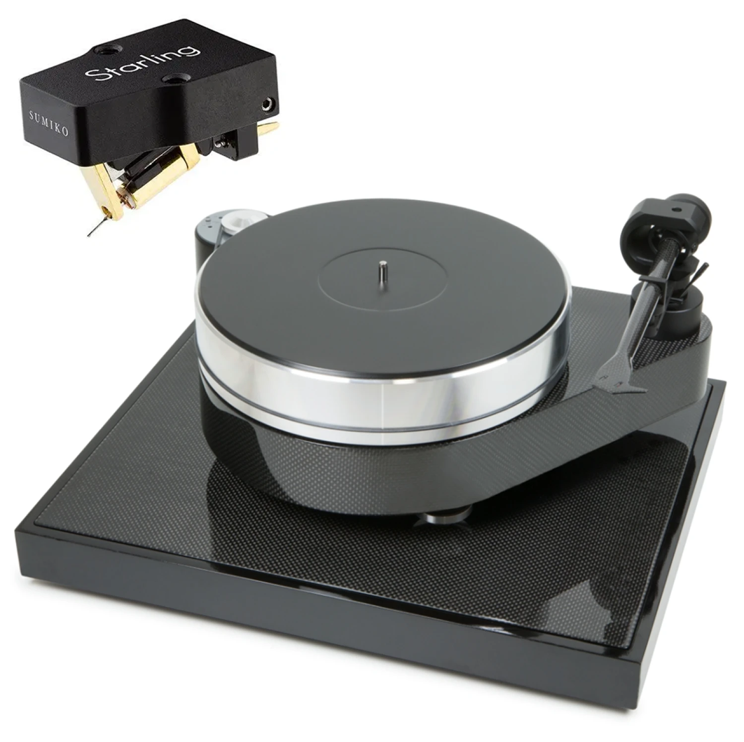 The RPM 10 Carbon uses a new extra heavy chassis which features a special CNC machined MDF plate that incorporates hard resin coated steel pellets to form an extra heavy precise sandwich construction. A special complex heat treatment and a carbon surface coating ensures superior low resonance levels. The mass-loaded chassis is effectively decoupled from its surface via the included Ground it Carbon and its magnetic feet. With two magnets located in the feet, the turntable is practically floating. The studs in the feet are only used for keeping them centered. Due to this unique feature the turntable is perfectly decoupled from the surface it is placed on. Combined with a new special polished aluminium platter with internal TPE damping and a vinyl layer on top, the inverted ceramic main bearing delivers an absolute stable turntable speed with extra low rumble. The extra heavy outboard motor unit is equipped with a precise motor control and features a built-in switch between 33 & 45 rpm. Last but not least the non-compromise 10“ Evo tonearm with conical carbon-fibre armtube and inverted bearing design ensures perfect tracking, even with demanding cartridges. Highly flexible top-grade copper internal wiring. Delivered with topgrade 5P phono cable „Connect it CC“ with RCA plugs (XLR as an option).