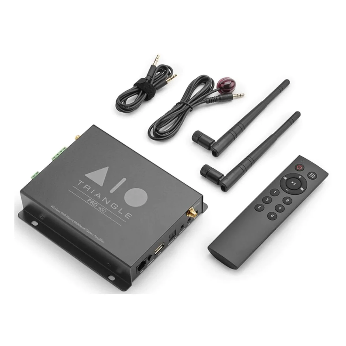 Upgrade your audio experience with the TRIANGLE AIO PRO A50 WiFi & Bluetooth Amplifier. This sleek and versatile amplifier delivers high-quality sound and a wide range of connectivity options in a compact and stylish package. With its 2 x 50W of output power, the A50 is perfect for powering bookshelf or in-wall/in-ceiling speakers, while its WiFi and Bluetooth connectivity allow you to stream music from your phone, tablet, or computer with ease.