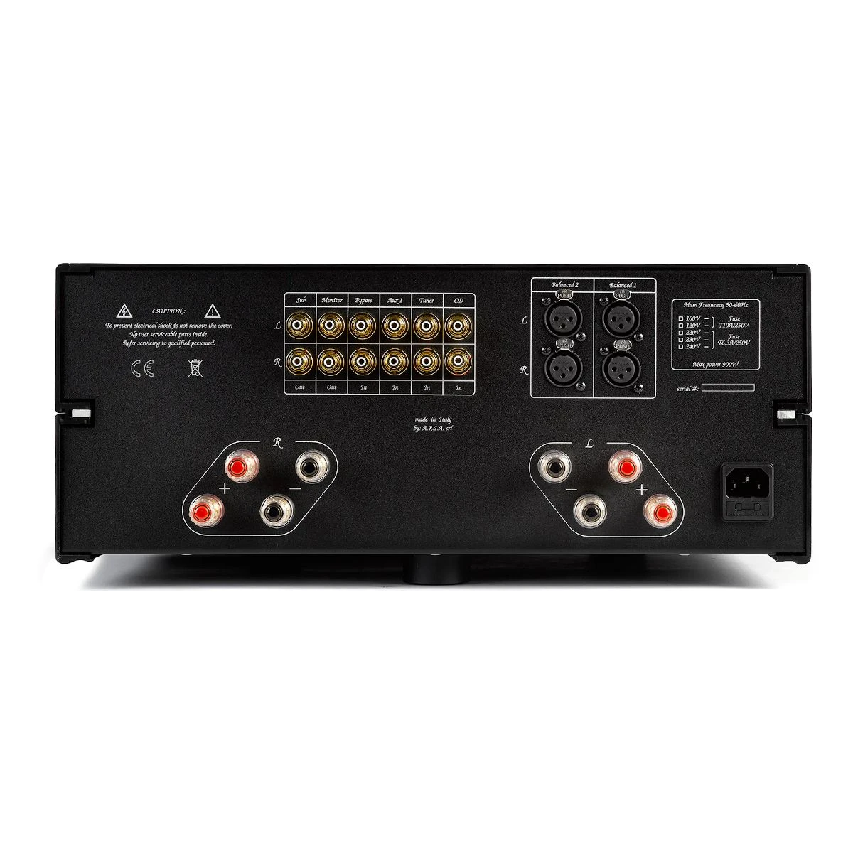 The preamp section of the Unico 150 also incorporates a number of innovative solutions. The preamp section is totally passive. An ALPS potentiometer is shielded in four sections, parallel in pairs especially in the region of high attenuation. The selected sources are connected one at a time in order to interrupt the ground loops associated with the unused connections.