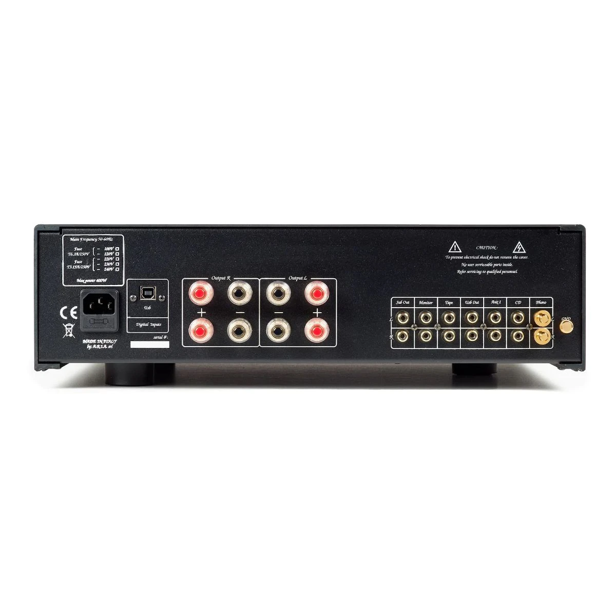 - Three line inputs, of which one can be configured to become a phono input after easy installation of an internal phono stage module which can accept any type of turntable cartridge.